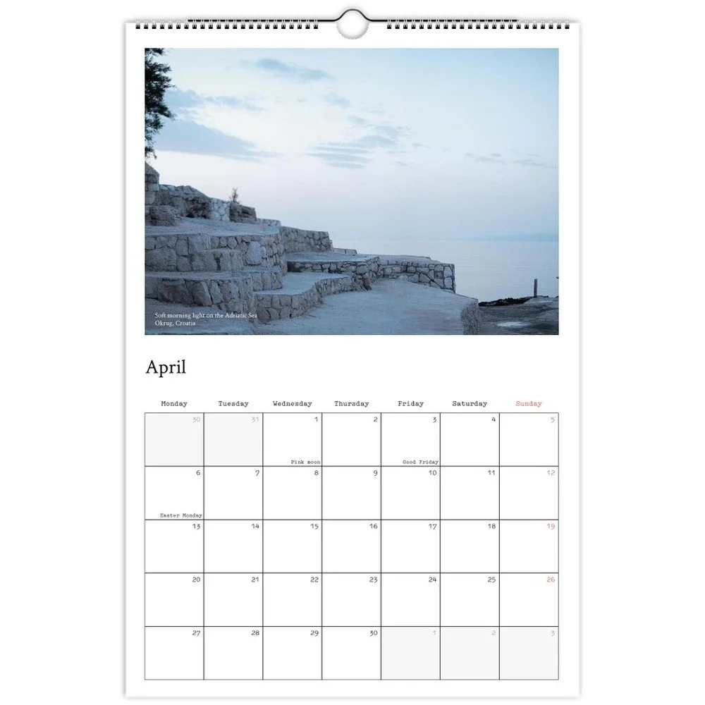 Every image was chosen to do what my work has always aimed to do: spark curiosity and awaken that pull to go somewhere new. My hope? That you'll flip through these pages and feel inspired to plan your next escape—maybe even jot it down right on the calendar itself.